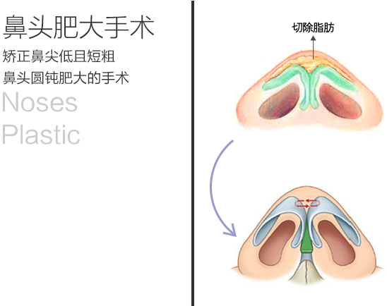祛除鼻頭脂肪組織,聚攏圓鈍寬展的鼻頭軟骨;